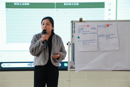以此为契机,周莉带领参研教师展开对话式理论学习。她以问题为引,引导教师们立足自身教学实践各抒己见,在观点互鉴、经验共享的互动对话中,梳理韵律活动的核心经验,明确4-5岁幼儿的韵律能力发展水平,同时凝练出韵律活动中有效的师幼互动策略。原本零散的理论知识与鲜活的实践场景深度勾连、共生共长,最终让大家逐步构建起对韵律活动师幼互动的清晰且系统的认知体系。