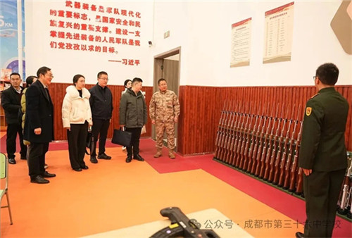 为深化川渝藏国防教育协同实践,共探立德树人跨区域育人新路径,2025年12月26日,昌都市教育局调研团走进成都市第三十六中学(以下简称:成都三十六中),开展国防教育专题调研交流活动。此次活动以“强边固防”使命为牵引,搭建起川渝藏校际国防教育经验共享的坚实桥梁,助力三地在协同育人领域凝聚共识、共促发展。