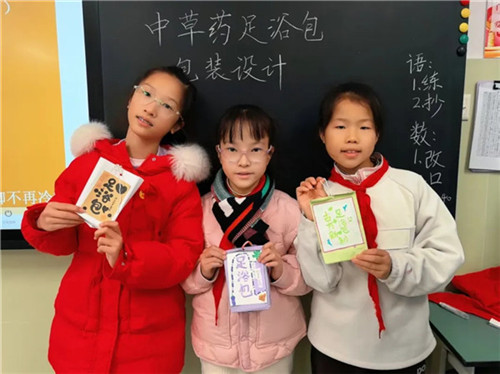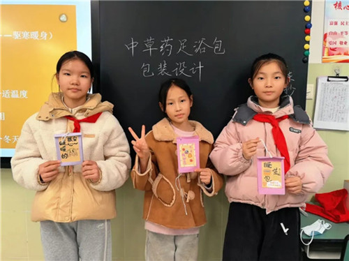 孩子们小心翼翼地配比、混合,将精心选择的药材装入无纺布袋。当草药的清香在教室弥漫,一个个饱含心意的泡脚包在小组合作中诞生,成就感写在每一张笑脸上。