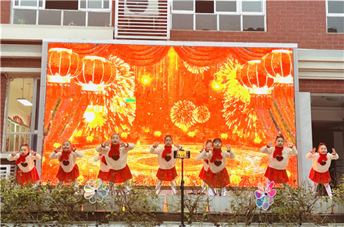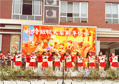 伴随着欢快活泼的音乐,二年级二班的同学们身着节日盛装,宛如冬日里跃动的精灵,率先登场。以一支活力四射的女生舞蹈《新年快乐》,瞬间点燃了全场热情。