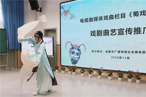 为推动中华优秀传统文化创造性转化、创新性发展,切实将“五育融合”要求落地到育人实践中,近日,成都市茶店子小学校清淳分校联合成都电视台融媒体曲艺栏目《蜀戏新韵》,启动“非遗川剧进校园”专项行动。国家一级演员领衔的艺术名家团队走进校园,以“讲座+展演+互动”三维模式,为师生打造沉浸式文化课堂,构建起“专业媒体+学校教育+非遗传承”的协同育人新格局,为学校美育工作注入鲜活文化动能。