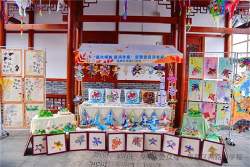 静态展区宛如一片“会说话的风筝天空”。这里陈列着学生亲手绘制和制作的风筝作品、环保立体摆件、航天主题模型及系列文创。每一笔色彩、每一个结构,都承载着孩子们的梦想、情感与创造。展区以物传情,以艺载道,让观者在视觉之美中,触摸学校“五育融合”的育人温度。