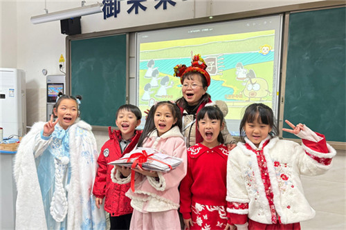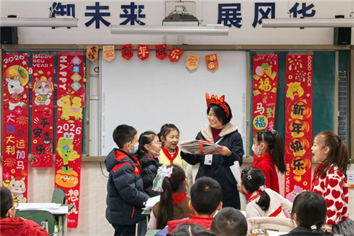 红灯笼高高挂起,福卡上印满期许,校园里处处洋溢着辞旧迎新的喜悦。身着红色服饰、汉服的孩子们,如同移动的“新年符号”,为校园增添了浓浓的节日氛围;“学校的特派祝福小分队”走进各班教室,将定制礼物与新年祝福送到每一个孩子手中,让温暖与期许萦绕心间。