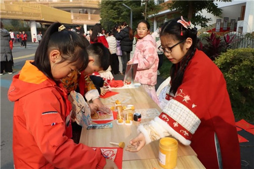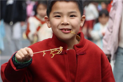 本次集市特别设计了两种“商业模式”,让孩子体验不同的协作形态:独资摊位、股份有限合作摊位。集市上最动人的,莫过于“小摊主”化身“小讲师”的时刻。书法、对联、中国结、拓印扎染、绘制糖画、投壶、猜灯谜……技艺在指尖流淌,文化在言语间传递。