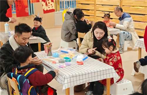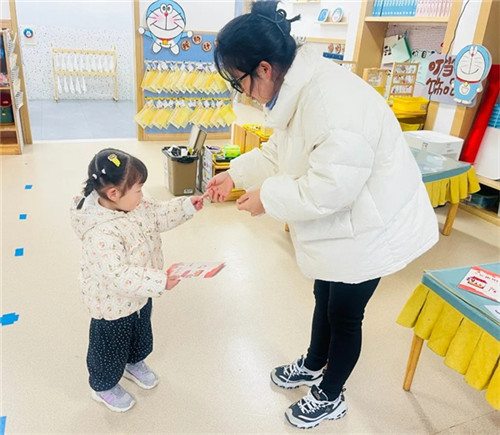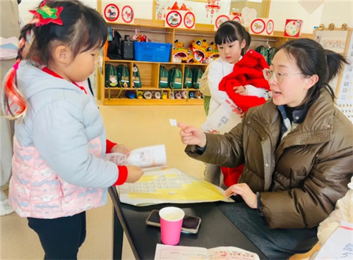 伴随着大门徐徐打开,孩子们的寻找年味之旅正式开启。他们手握提前准备好的新年祝福,在家长的帮助下贴到新年日历上,这是他们对来年美好的期盼,亦是对自己今年成长的满意答卷。