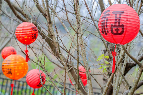 步入芽园,就像进入红彤彤、金灿灿的童话里。一个个灯笼挂满屋檐、树梢,一张张福字贴满窗橱,一簇簇烟花将芽园装扮得缤纷烂漫。