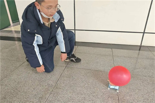 四年级的孩子们将灵巧的车轮、轻便的车身、橡皮筋动力、气球动力相结合,专注地调试、耐心地连接。制作好小车后,孩子们变身严谨的“道路测试员”。一次次在赛道上放飞小车,用尺子测量车轮滚过的距离,用秒表记录奔跑的时间,在小组内激烈讨论“怎样才能跑得更稳更远”……这次活动,孩子们亲手感受到齿轮的转动、动力的传递,更在他们心里种下了探索科学、动手创造的种子。