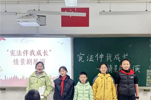 冬日校园,法治同行!同学们以诵读悟初心、以演绎践法治、以比拼夯基础,在宪法诵读中感受庄严,在情景剧里演绎民族团结与权利守护,在知识竞赛中夯实法治根基。活动紧扣教材核心,将“各民族一律平等”“维护国家领土完整”等宪法原则与铸牢中华民族共同体意识深度融合,让法治知识从课本走进生活。同学们在参与中读懂宪法精神,学会尊重差异、守护权益,争当懂法守法的小卫士。