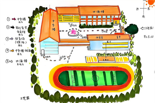 二年级开展校园路线规划图制作学科活动,孩子们用画笔勾勒出属于自己的校园图景。从手绘的方位坐标到色彩斑斓的建筑轮廓,中华楼、四海楼、操场等校园地标在画纸上鲜活呈现,每一笔都藏着对校园的观察与理解。孩子们不仅用创意设计路线,更在绘图中认识方位、梳理空间关系,将学科知识融入童趣创作,让抽象的方位认知变成了生动的实践体验,尽显童真巧思与学习热情。