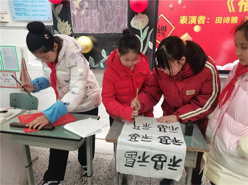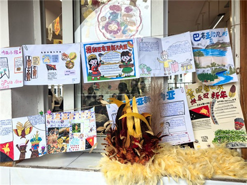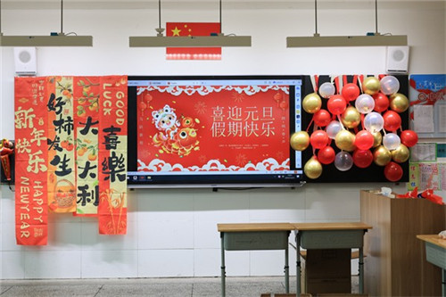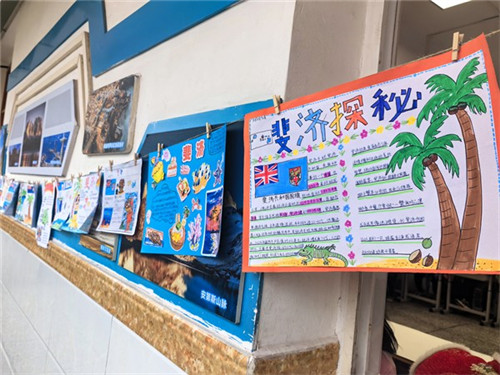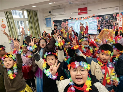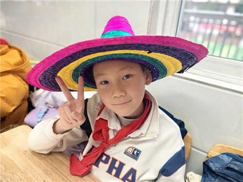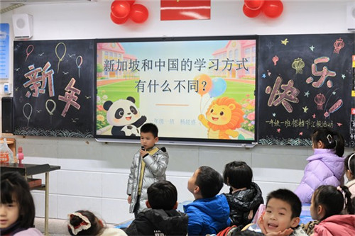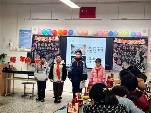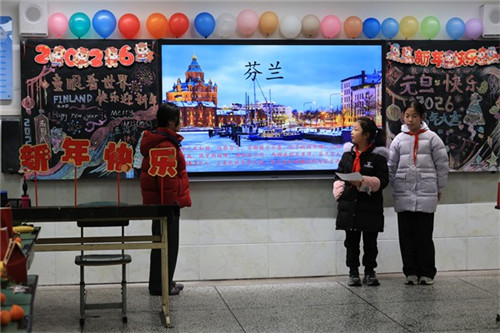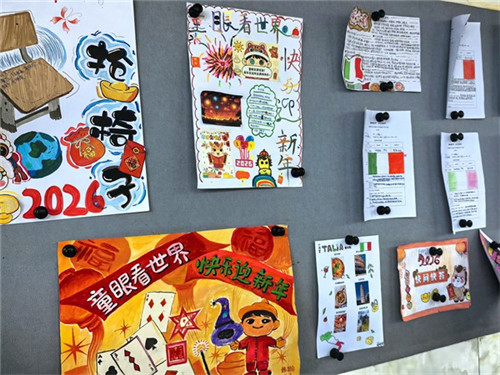 校园里处处洋溢着新年的快乐气息:同学们以研究国家为主题,把教室扮成了特色“文化展厅”,每间教室都成了“童眼看世界”的鲜活窗口,让新年氛围从教室蔓延到整个校园的角落。