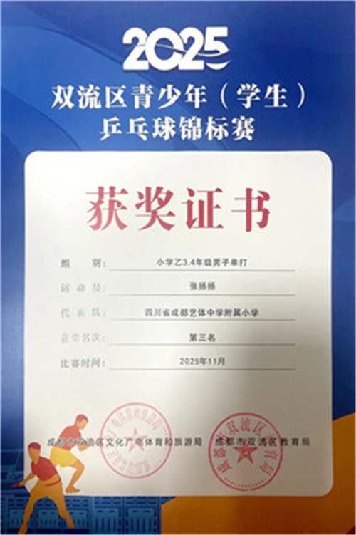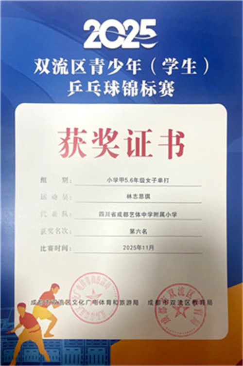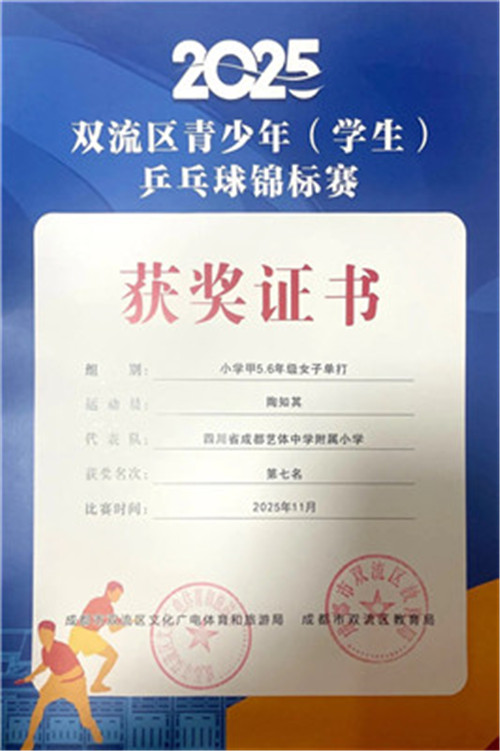 此次参赛不仅为学子们提供了切磋球技、展示自我的平台,更培养了大家坚韧不拔的意志品质和团队协作精神。学校将以此次赛事为契机,持续重视体育教育,深耕乒乓球等特色体育项目,鼓励更多学子参与体育运动,助力儿童全面发展。未来,学校将继续积极参与各类区级体育赛事,争取再创佳绩!(江蕾 唐兴兰)