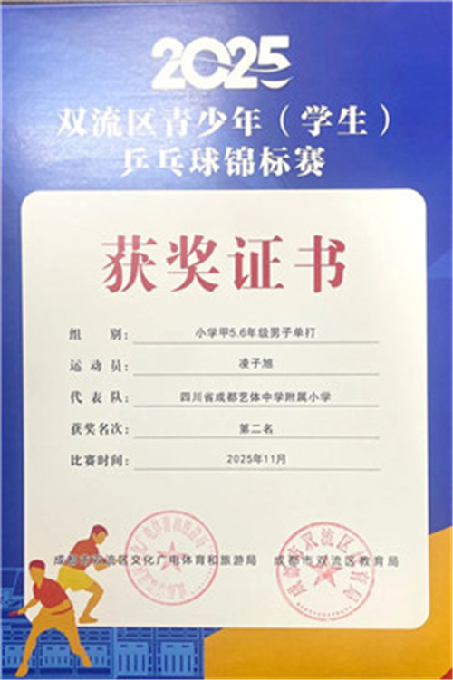 近日,双流区青少年(学生)乒乓球锦标赛在双流艺体中学体育馆圆满落幕。本次赛事由成都市双流区文化广电体育和旅游局、成都市双流区教育局联合主办,成都市双流区业余体校承办,成都市双流区乒乓球协会协办,本次赛事吸引全区多所学校数百名青少年运动员同台竞技,赛场内外竞争激烈、精彩纷呈。