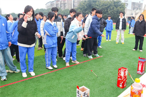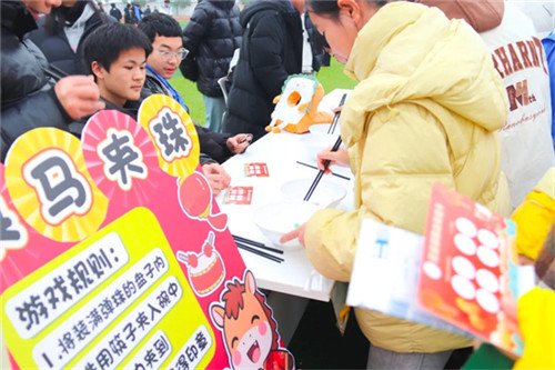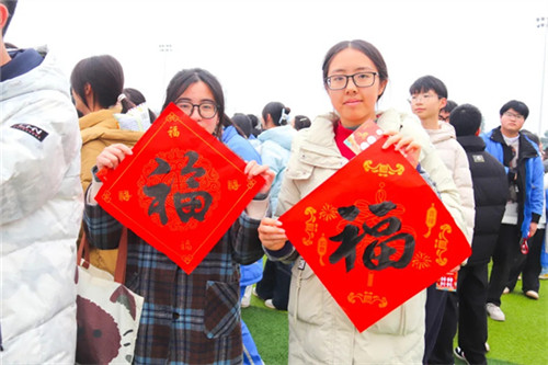 开幕式结束后,主体活动——游园会正式开启,校园运动场被划分为新年寄语区、传统文化体验区和游园会三大区域,各区域特色鲜明、趣味十足。