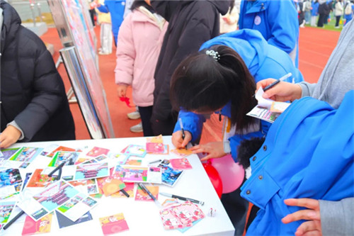 骏马邮驿区成为了师生们寄托美好愿望的温馨角落。印有学校Logo的信封与明信片是师生们传递新年祝福的载体,同学们纷纷写下新年愿望与目标,或张贴在展板上分享期许,或将祝福带回家分享给家人朋友,一字一句间,皆是对新年的美好憧憬。