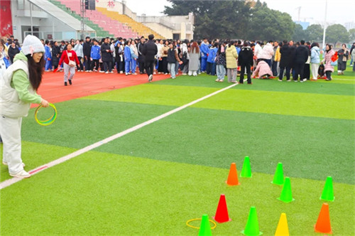 个人项目则是同学们展示个人能力的舞台。套圈、夹弹珠、贴福鼻、足球九宫格等项目前都排起了长队。“马到圈成”考验着精准度,“快马夹珠”比拼手速与耐心,“天马星空·贴福纳吉”充满童趣,“驷马难追·足定乾坤”让足球爱好者大展身手。大家尽情参与,在游戏中收获快乐与奖品,整个运动场变成了欢乐的海洋。