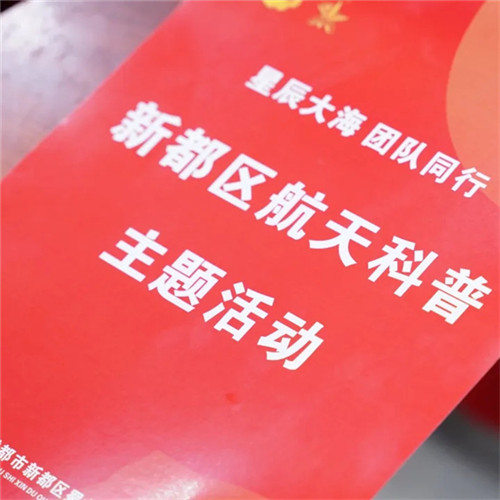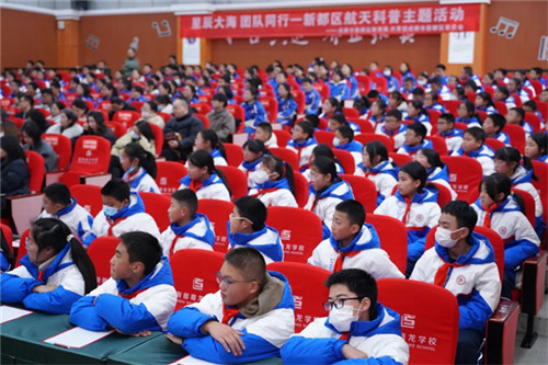 12月16日,由新都区教育局与共青团新都区委联合主办的“星辰大海·团队同行”航天科普主题活动在成都市新都区蜀龙学校顺利举行。全区各学校团干部代表、蜀龙学校共青团员及少先队员代表参加了此次活动。