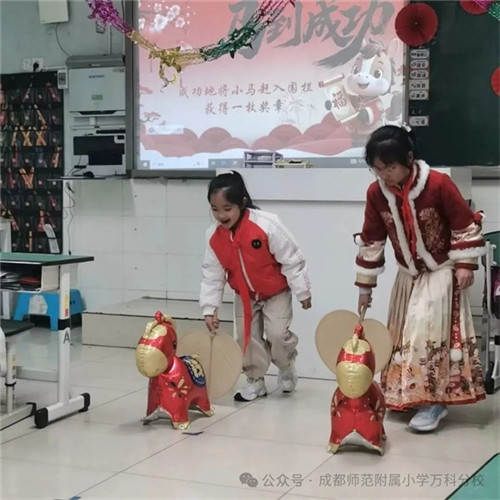 冬日的阳光洒满校园,成都师范附属小学万科分校“童心同乐迎元旦”非遗主题新年游园活动如期而至!全校学子在沉浸式体验中解锁非遗魅力,用欢声笑语为2025年画上圆满句号。