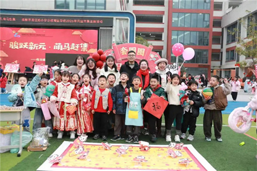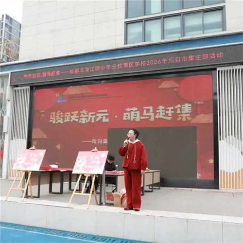 一校糖香融年味,半街烟火暖岁末。当12月的风裹着岁末的融融暖意,缠上成都市龙江路小学分校南区学校里摇曳的红灯笼时,那场筹备许久的“骏跃新元·萌马赶集”元旦市集,终于在31日,把整座校园酿成了一坛浸满甜香与烟火气的年味蜜酒。这里既有传统民俗的雅韵,也有闲置益购的喜悦,更有美食摊位的醇香,一场“传统文化+公益实践+生活体验”的赶集盛会,就此拉开帷幕。