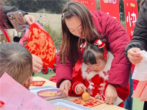 稚嫩小手创作的“年夜饭”“跨年照相馆”“鱼跃龙门”,以及鞭炮、福字、灯笼等充满童趣的手工作品,承载着孩子们对新年的期待与祝福,为幼儿园增添了浓浓的年味氛围。