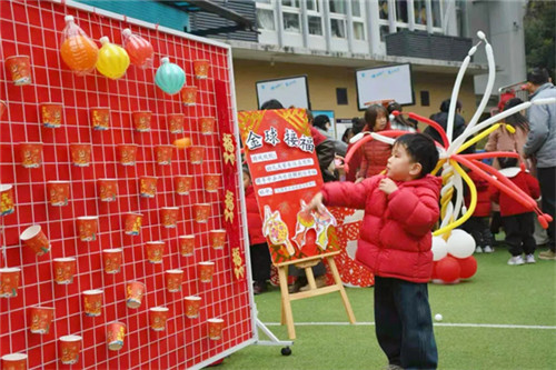 备受期待的游园活动热闹开启!孩子们雀跃穿梭于各个摊位。套圈送福、摸福、金球接福……在欢声笑语中,共同体验传统年趣,在温馨互动中接福纳祥,喜迎新年。