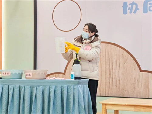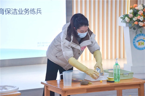 在实践操作环节,根据三个园区保育保洁队伍的不同特点和实际工作中的薄弱点,设计了侧重点不同的实操项目,让练兵真正服务于日常,解决真问题。