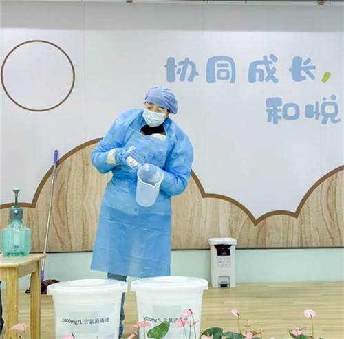 练兵现场,保育老师们精神饱满、从容应战,全程展现出扎实的实操功底和严谨的工作态度。实操环节聚焦塑料玩具消毒核心任务,从个人防护装备的规范佩戴,到玩具的分类清洗、含氯消毒剂的精准配比,再到消毒浸泡、充分漂洗、通风晾晒等全流程操作,老师们动作娴熟、步骤规范,每一个细节都彰显着日常工作的积累与沉淀。