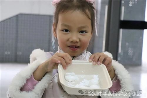 攒了一学期的积分,在今天变成一张张体验券。孩子们手握体验券,欢呼着涌入“年味特色体验区”,开启手作模式。