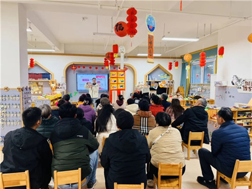 在亲子元旦活动筹备阶段,各班开展家长会,老师详细介绍了亲子元旦活动的整体流程,重点阐述了“美食街”专场背后的教育初心——让孩子在真实消费场景中学会计划与选择,并在体验中萌发公益之心。