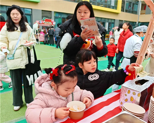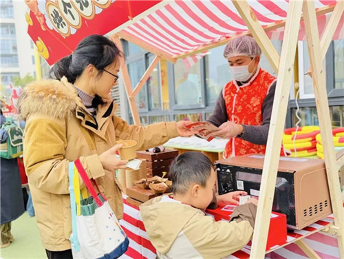 亲子活动当天,幼儿园的每一个角落都洋溢着节日的喜悦。孩子们手持地图,在园内“逛街”“赶集”,通过逛、玩、尝、演等多种方式,沉浸式体验传统民俗的魅力,在欢乐中感受文化、收获成长。