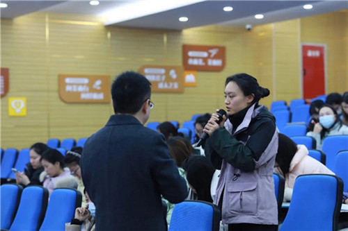 课后研讨环节,思维的火花持续碰撞。张声媛老师针对《读不完的大书》进行精要说课,从学情分析、教学目标设定、教学流程设计、重难点突破等方面,详细阐述了“以要素为纲、以学生为中心”的教学思路,清晰呈现了从阅读感知到表达迁移的完整教学路径。