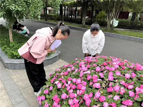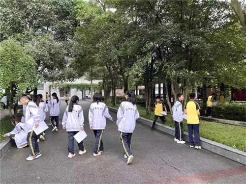 “一片与你心情共鸣的叶子——选它是因为它的颜色像你最近安静的心情。”类似这样的引导语,帮助学生将外部观察与内心体验相结合。教师特别强调安全与纪律,要求学生们只捡拾地面的落叶、落花,不破坏生长中的植物,同时保持安静,不影响其他班级正常上课。