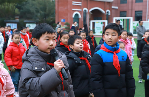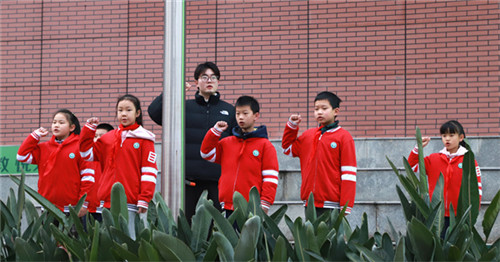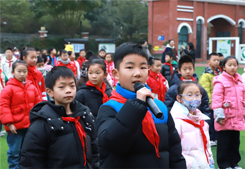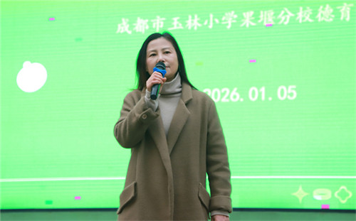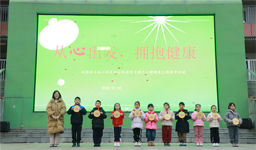 2026年1月5日,成都市玉林小学果堰分校举行了“从心出发,拥抱健康”心理主题升旗仪式。本次升旗仪式由一年级(4)班赵杰兴、陈可欣同学及黄嘉琪老师共同主持。