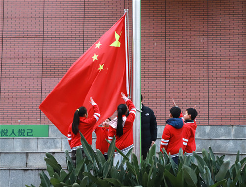 在全体师生的注目中,国旗护卫队步伐整齐,庄严出旗。伴随着雄壮的《义勇军进行曲》,五星红旗冉冉升起。升旗礼毕,全体师生齐声宣誓:“我是中国人,我用美德爱祖国;我是果堰人,我用行动爱学校!”誓言铿锵,展现了学子们深厚的家国情怀与校园归属感。