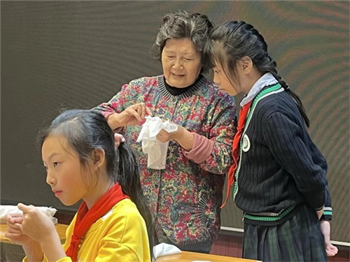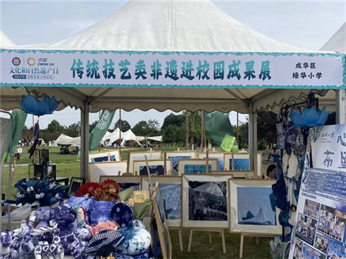 美育平台的搭建:近年来,培华小学扎染工作坊受邀参与全国、省、市、区各级展示活动,均获高度评价;同时,学校特别邀请国家级非物质文化遗产传承人张晓平进校授课,同学们通过亲手实践感受传统非遗扎染的深厚底蕴,既培养了对传统工艺的热爱与传承意识,也为深入了解非遗扎染奠定了坚实基础。