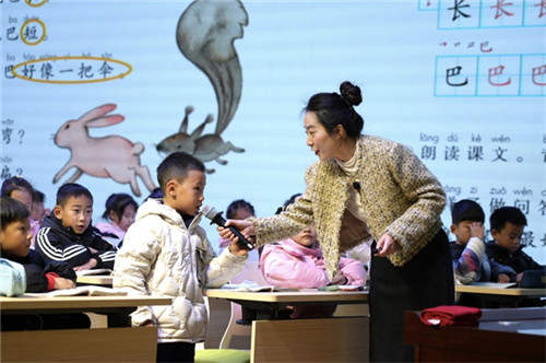 王亚萍老师与一年级一班的孩子们带来的语文课《比尾巴》拉开了活动的序幕。课堂上,王老师创设了AI助学伙伴——朱迪警官,化身趣味任务官,发布任务情境,激发学生学习热情;借助科大讯飞朗读测评工具,对朗读效果给予即时高效的反馈;创意策展环节更让助学伙伴将学生作品转化为富有感染力的儿歌,让学习成果实现可视、可感、可分享。这节语文课,生动展现了AI技术在低段课堂教学中的应用实效。