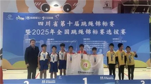 在2025年四川省第十届跳绳锦标赛暨2025年全国跳绳锦标赛选拔赛上,学校跳绳代表队再次力压群雄,荣获团体一等奖,五年级刘佳民、姜睿阳、段正豪三名学生凭借突出表现成功入选四川省代表队,随后,这三名学子代表四川省征战2025年全国跳绳锦标赛,在U1160秒交互绳男子组项目中奋勇争先,最终斩获铜牌,同时成功获得2026年亚洲跳绳锦标赛选拔资格,为学校、为四川赢得了荣誉。
