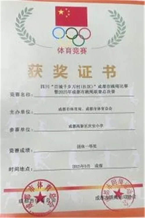 作为学校阳光体育的核心特色项目,跳绳运动始终贯穿庆安小学的体育教学与课余活动,是学校贯彻党的教育方针、落实《关于全面加强和改进新时代学校体育工作的意见》的重要载体。在成都市学生跳绳联赛、成都市跳绳联赛总决赛、四川省交互绳大赛、2025全国跳绳联赛(四川大英站)、四川省跳绳锦标赛、2025全国跳绳锦标赛中,庆安小学跳绳代表队凭借默契的团队配合、娴熟的跳绳技巧与顽强的拼搏精神,一路过关斩将,多次斩获团体一等奖,展现了过硬的综合素养。
