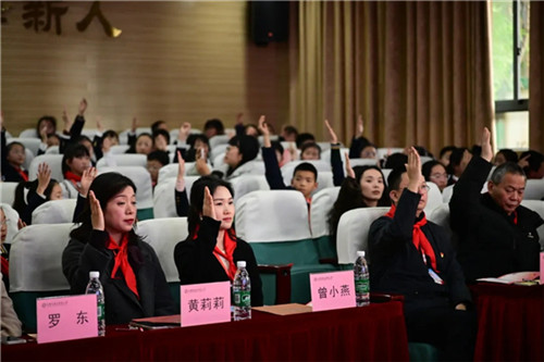 经过全体代表郑重表决,邱锐、曾小燕等11名同志当选为新一届少工委委员。聘书在他们手中接过,这是一份责任,更是一份担当,从此与红领巾事业紧紧相连。