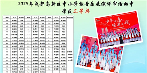在成都高新区中小学校音乐展演评审活动中,顺江学校合唱团凭借和谐的声部交融、精准的音准把控与生动的舞台表现,荣获三等奖。同学们在倾听与配合中,让天籁之音流淌,既展现了扎实艺术素养,更诠释了“同心则声远”的协作真谛。