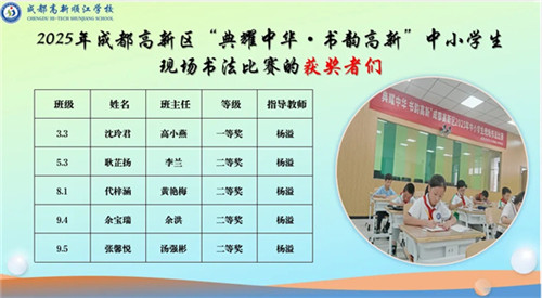 在“典耀中华·书韵高新”现场书法比赛中,顺江学校学子从全区一千余名参赛选手中脱颖而出。他们提笔挥毫,在纸墨间传递千年文脉,一点一画,习得专注与耐心;一字一篇,涵养从容与端正。