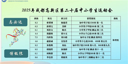 2025年成都高新区第二十届中小学生运动会上,顺江学校学子捷报频传。奔跑、跳跃、投掷,每一个动作都彰显着突破极限的勇气;冲刺、腾跃、发力,每一次尝试都书写着永不言弃的坚韧。同学们在竞争中收获成长,在拼搏中锤炼品格。