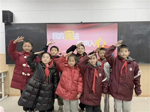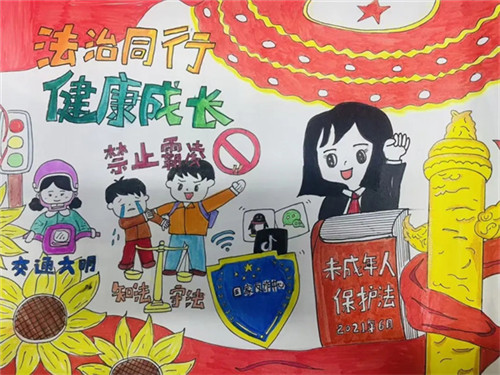 法润童心,宪启未来;与法同行,护航成长。(江蕾 尹佳 尧诗茹)
