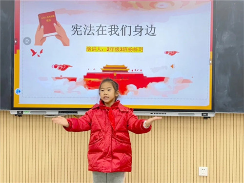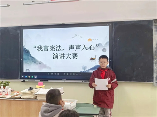 在“我‘言’宪法,声声入心”演讲比赛中,孩子们以《宪法,我成长的守护者》《我是宪法小卫士》等为题,站上讲台,以童言述说宪法与自己成长的故事。他们或讲述权利受保护的温暖经历,或畅想法治社会的未来图景,用真诚的语言传递对宪法的理解与信仰。声声入耳,句句动人,演讲台成为了法治精神浸润童心的生动课堂。