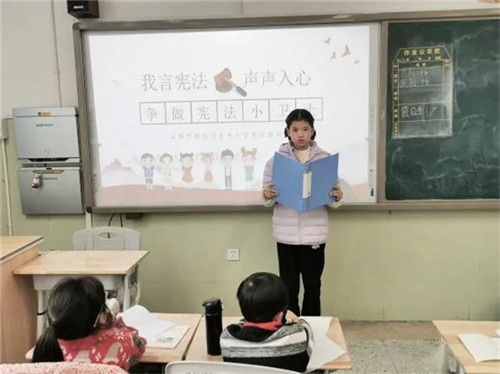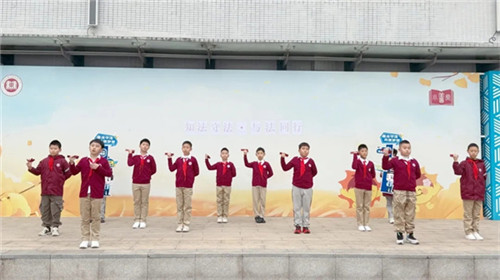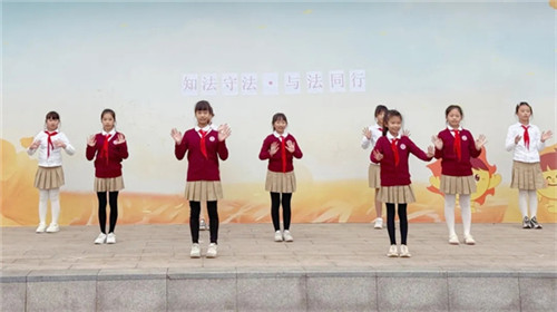 小小的身影站在台上,一字一句,铿锵有力,那是诗朗诵《我与宪法共成长》中的童声回响;节奏明快的快板声里,宪法条文变得朗朗上口,法治精神随节拍跳跃、流淌;最后,一段充满童真的宪法主题舞蹈,以肢体语言述说着权利与责任的故事,让法治的种子在律动中悄然萌芽。