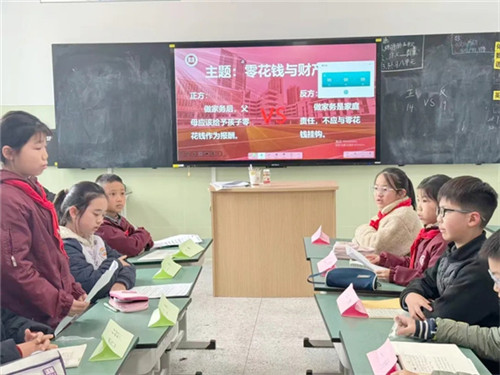 法治教育,重在思辨。面向五年级学生开展的《“宪”在开辩,法理越明》主题辩论赛,成为本次宪法活动月最具思辨色彩的亮丽风景。活动分为班级选拔与年级对抗两个阶段:在班级初赛中,各班不仅推选出优秀辩手,更邀请学生担任评委,亲身参与评价,在倾听与评判中深化理解;在年级决赛中,打破班级界限,两两对抗,真正实现了“在交锋中明理,在协作中共成长”。