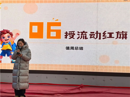 表彰过后,进入流动红旗授予仪式。这面象征集体荣誉的旗帜,是对各班级优良班风班貌、师生严守安全规范及主动担当安全责任的嘉奖与肯定,更是对全体师生携手筑牢安全防线、共建平安校园的激励与期许。