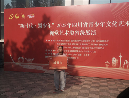 摘要:由八家省级单位联合主办的“新时代·蜀少年”2025年四川省青少年文化艺术展演落幕,崇州市辰居小学五年级一班马滢溪同学凭借作品《我心寄山河 蜀韵满成都》,斩获绘画类省级二等奖!