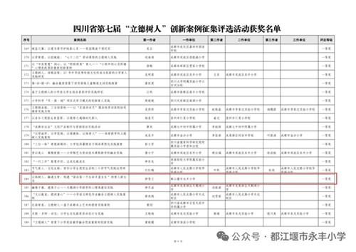 喜报!永丰小学荣获四川省“立德树人”创新案例一等奖!