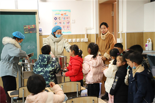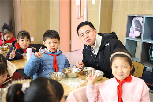 会后,家委代表们走进班级,与孩子们共进午餐,开展“透明食堂,实地陪餐”活动,用目光守护“舌尖上的安全”,用体验联结“成长中的温度”。
