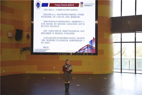 随后,两名学生代表登台,分享了自己在法语学习中的趣味点滴,以及在中法人文交流活动里的成长与感悟,充分展现出成都蒙彼利埃小学学子开阔的国际视野与出色的跨文化理解力。